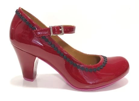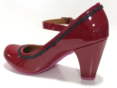 Indulge in these stunning deep red patent leather shoes by Cristofoli. These feminine beauties have a flattering adjustable ankle strap, delicate black flower bead trimming and Cristofoli’s trade mark pink sole
