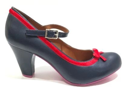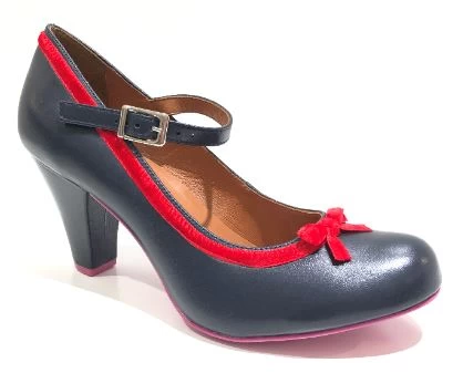 This vintage inspired Cristofoli Shoe is both timeless and elegant. This beautiful shoe is in a versatile navy leather, and it is adorned with a simple and very pretty red velvet ribbon, It also has an adjustable ankle strap for the perfect fit. It’s a fun twist to the classic pump
