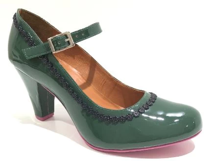 Indulge in these stunning dark green patent leather shoes by Cristofoli. These feminine beauties have a flattering adjustable ankle strap, delicate black flower bead trimming and Cristofoli’s trade mark pink sole