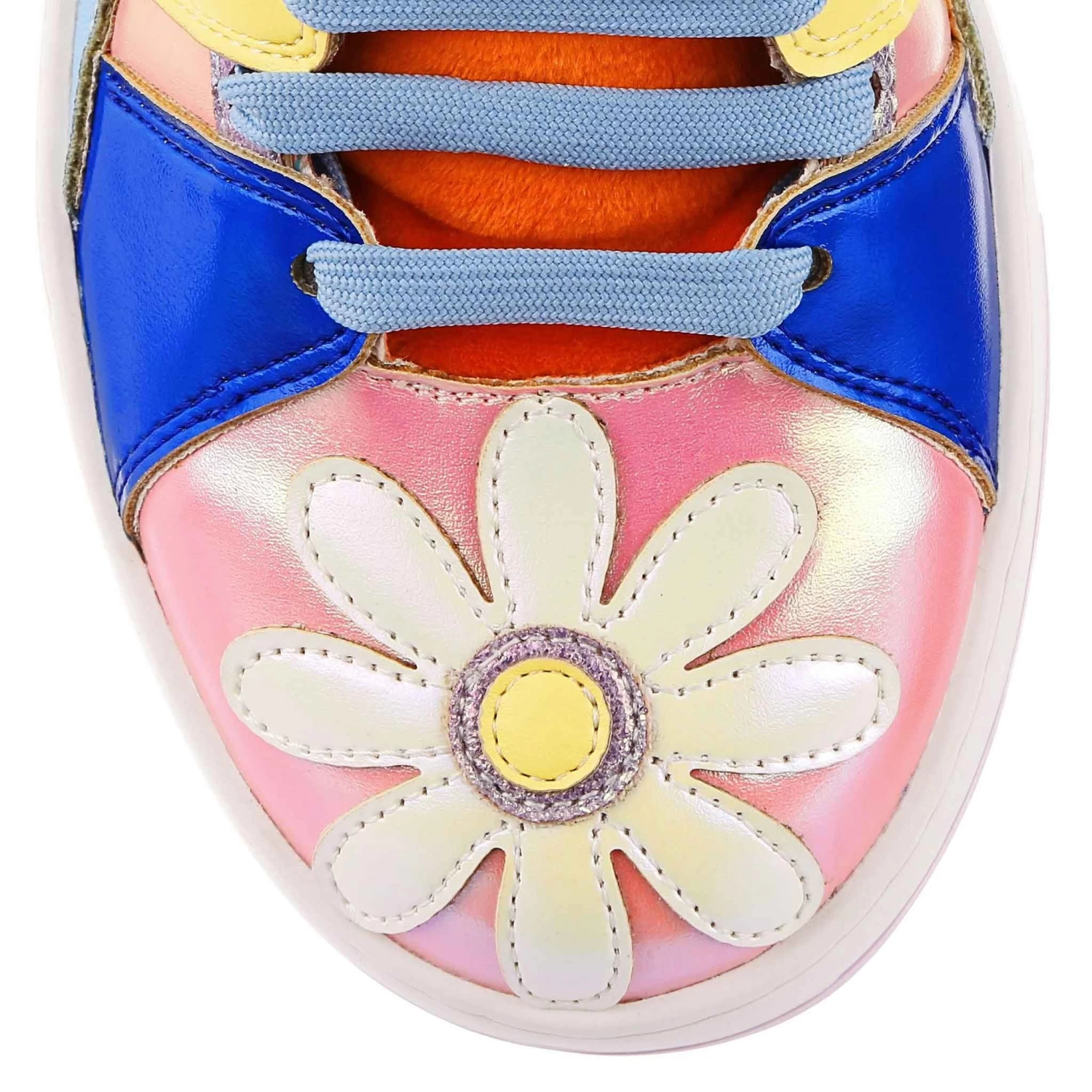 Oh Tweety! These twainers are pwetty poifect! Featuring an adorable applique of Tweety holding a flower, these perfectly colourblocked panels of yellow, iridescent pink, and dreamy blues are here to make sure you stand out from the crowd! Topped off with adorable daisies dotted on the toe and heel, with blue laces crisscrossing the bright orange faux fur tongue, they are sure to be instant faves.
