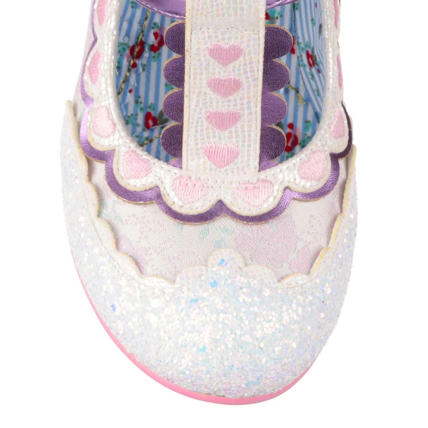 Aren’t these the icing on the wedding cake?! Whether you’re the bride or the bridesmaid, everyone will want to buckle themselves into these wedding mid heels. Pinks and purples are complimented with a delicate floral fabric base, white iridescent glitter toe and a t-bar with double ankle strap makes sure they stay secure all day and night. Scalloped edges and pink embroidered hearts finish off the sweetest wedding mid heels there ever were!