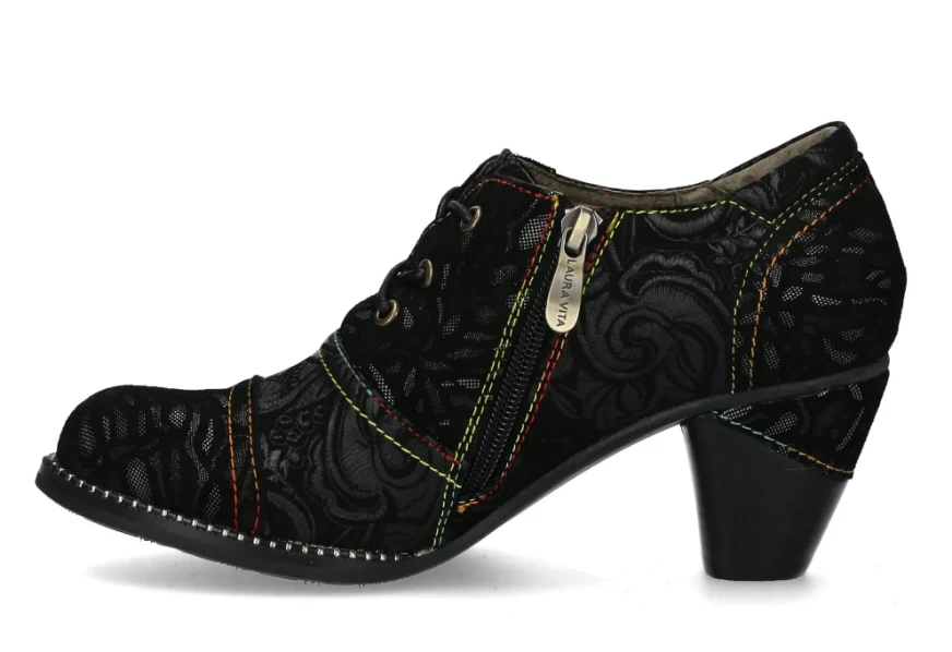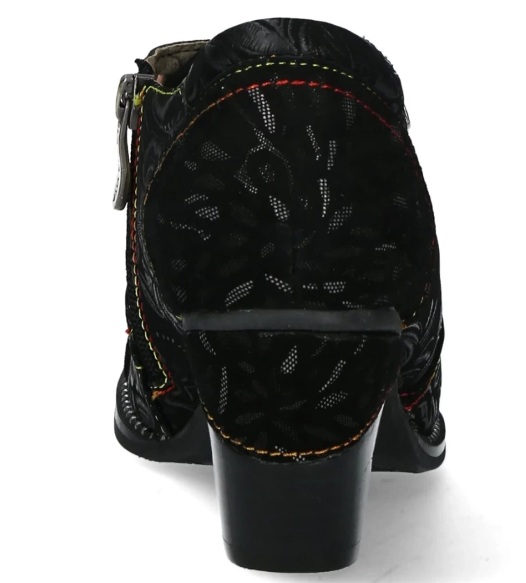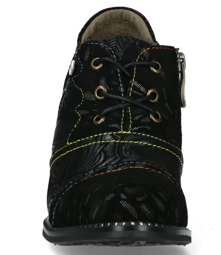 Looking for the perfect staple bootie, then look no further! This little bootie has it all with its great heel height, centre laces for the best fit and side access zip, all in a versatile black with embossed floral accents for added flair!