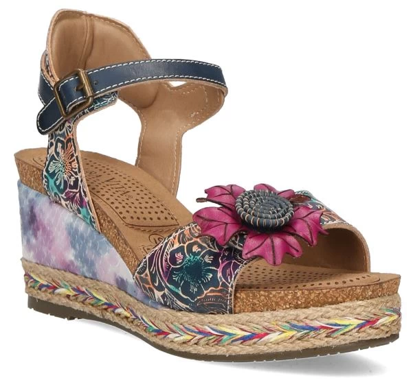 Beautiful Wedges by Laura Vita France, perfect for the warmer weather. These great wedges are as practical as they are gorgeous, with their adjustable ankle strap and adjustable placement over the top of the foot to fit any width. They are adorned with a super sweet flower that adds a fun little twist!