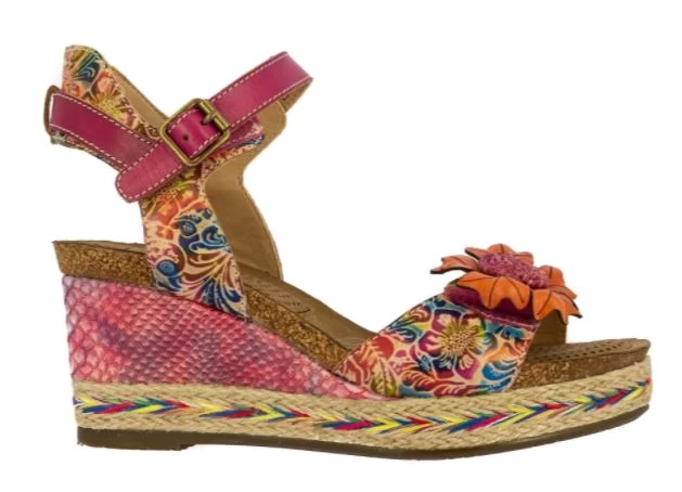 Beautiful Wedges by Laura Vita France, perfect for the warmer weather. These great wedges are as practical as they are gorgeous, with their adjustable ankle strap and adjustable placement over the top of the foot to fit any width. They are adorned with a super sweet flower that adds a fun little twist!