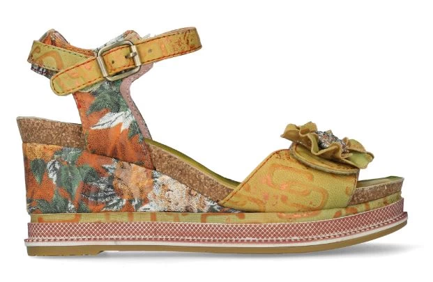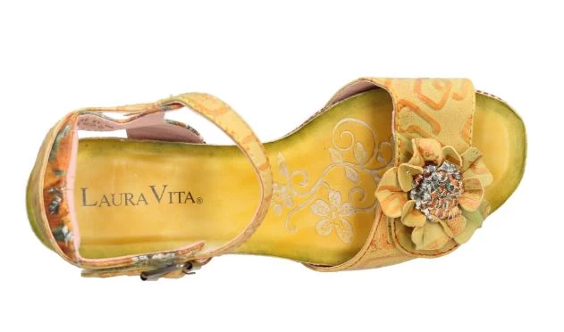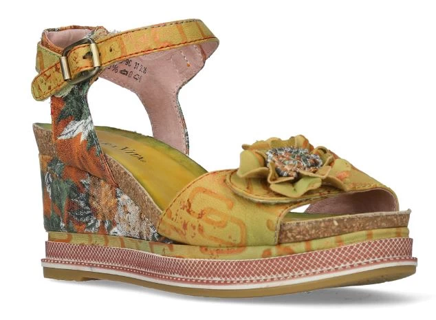 Beautiful Wedges by Laura Vita France, perfect for the warmer weather. These great wedges are as practical as they are gorgeous, with their adjustable ankle strap and adjustable placement over the top of the foot to fit any width. They are adorned with a super sweet flower that adds a fun little twist!