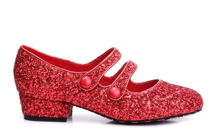 Alice Wonderland will be a fun addition to your wardrobe. These delightful Dorothy inspired heels are glitter encrusted with a low comfortable block heel.