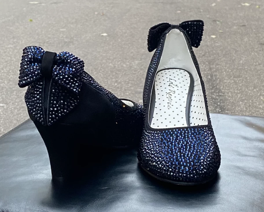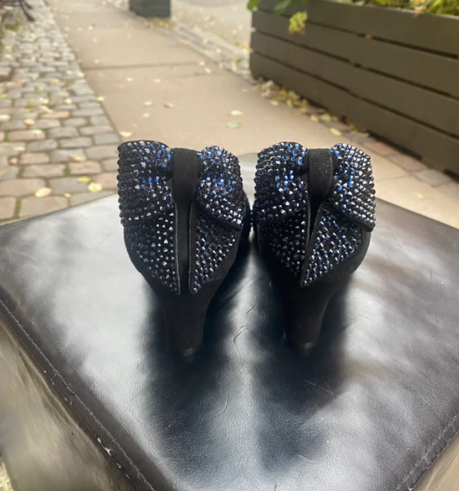 Want a little sophisticated sparkle in your life? Then look no further than these delightful, feminine beauties. These beautiful mid heels are covered in black sparkly gemstones that take these pretties to the next level and adorned with the finishing touch of an elegant bow at the back of the heel. Yes please!!!