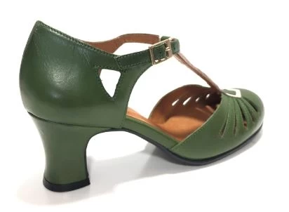 These Beautiful vintage inspired mid heels are in the softest leather that is just heaven on your feet! This pair is in a lovely kiwi green with a soft pink piping.